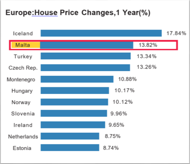 Theo số liệu thống kê từ Ngân hàng Trung ương CBM Malta, giá trị bất động sản của Malta tăng hơn 13,8% và chỉ tính riêng quý IV đã đạt 7,4% vào năm 2016.