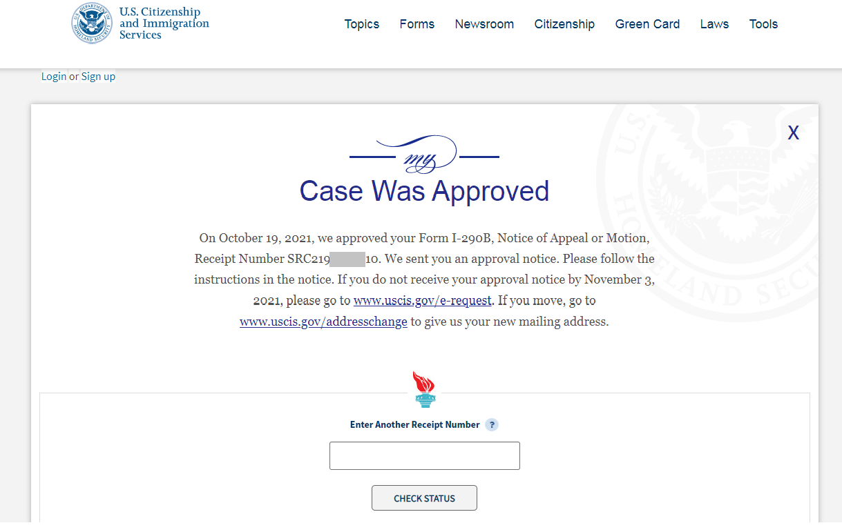 Lần kháng cáo thứ 2 đã thành công, đơn I-290B được phê duyệt, đồng thời đơn I-140 được phê duyệt trở lại