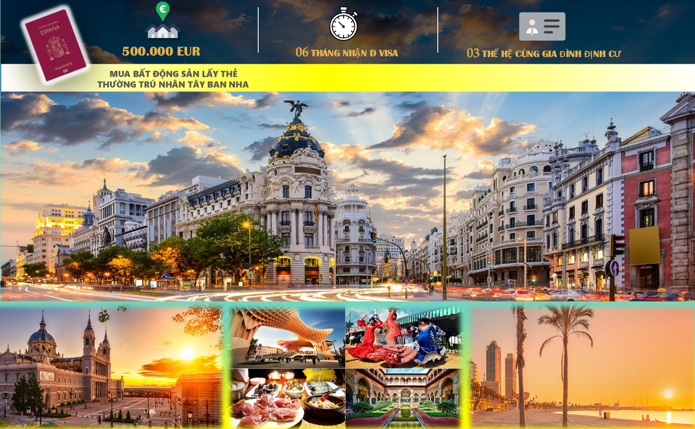 – Đầu tư bất động sản ít nhất 500.000 EUR tại Tây Ban Nha.