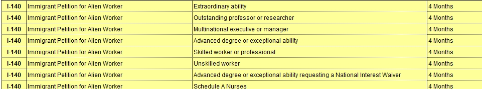 *NSC(Nebraska Service Center) – Những đối tượng có năng lực vượt trội xin visa theo diện làm việc số 1, đối tượng xin visa theo diện làm việc có tay nghề và chuyên môn đều có thời gian xét duyệt visa là 6 tháng. Ngoài ra, visa định cư số 1, 2, 3 còn lại tất cả cần 4 tháng đợi xét duyệt.