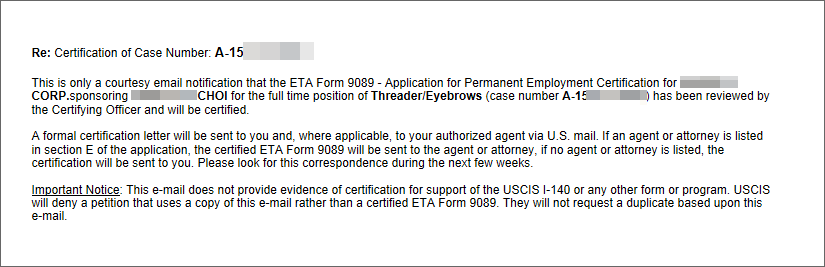 MISAMO – doanh nghiệp được Ranky.com đánh giá số 1 trong lĩnh vực tư vấn định cư và luôn đạt tỷ lệ xin Giấy phép lao động thành công 100% – lại gặt hái thêm được thành công mới khi khách hàng của Misamo mới nhận thêm 5 Giấy phép lao động cho visa định cư diện làm việc không có tay nghề. Đến nay, trong số những hồ sơ nộp cho Sở lao động vào tháng 12/2004 có trên 90% hồ sơ đã được duyệt và ra Quyết định cấp Giấy phép lao động vào tháng 6/2015. Tất cả hồ sơ nêu trên đều không bị thanh tra và chỉ sau 6 tháng đã được duyệt cấp phép. Những khách hàng của Misamo đã nhận được quyết định cấp phép lao động trên đều sử dụng hình thức nộp đơn kiến nghị (I-140) dịch vụ nên dự đoán chỉ trong vòng 6 tháng tới sẽ nhận được visa định cư (thẻ xanh). Chúng tôi hy vọng những khách hàng chưa nhận được thông báo sẽ nhận được kết quả tốt vào một ngày gần nhất.