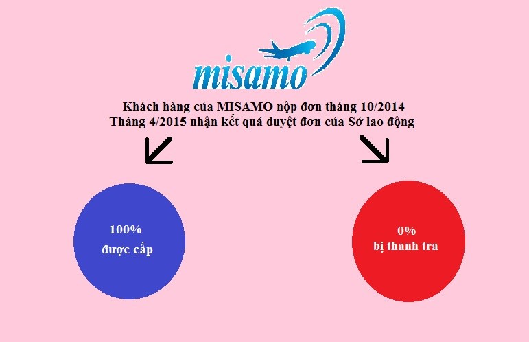 MISAMO – Doanh nghiệp có tỉ lệ nhận Chứng nhận lao động cao nhất. Chúng tôi cam kết trong hợp đồng rằng “Misamo sẽ hoàn trả 100% chi phí cho khách hàng nếu Chứng nhận lao động bị từ chối và không có thêm bất cứ khoản phí nào phát sinh”.