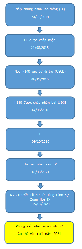 Khách hàng LIM *** người Hàn của công ty Misamo đã được phê duyệt trở lại hồ sơ sau thanh tra (TP) vào ngày 18/03/2021. Ngày 15/07/2021, hồ sơ của khách hàng này đã được NVC chuyển đến Tổng Lãnh Sự Quán Hoa Kỳ để sắp xếp lịch phỏng vấn.