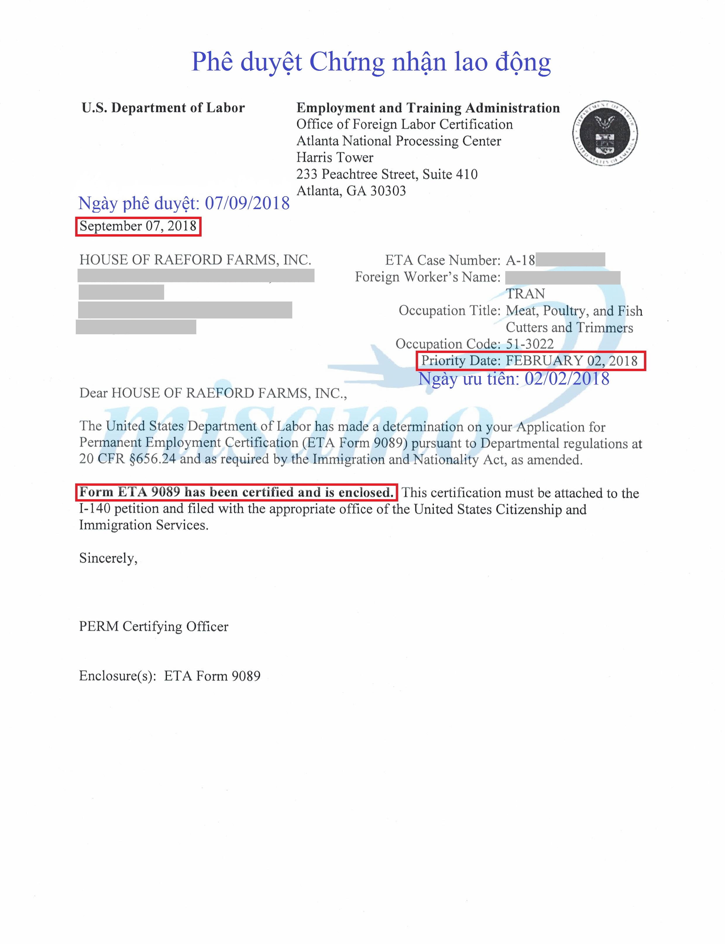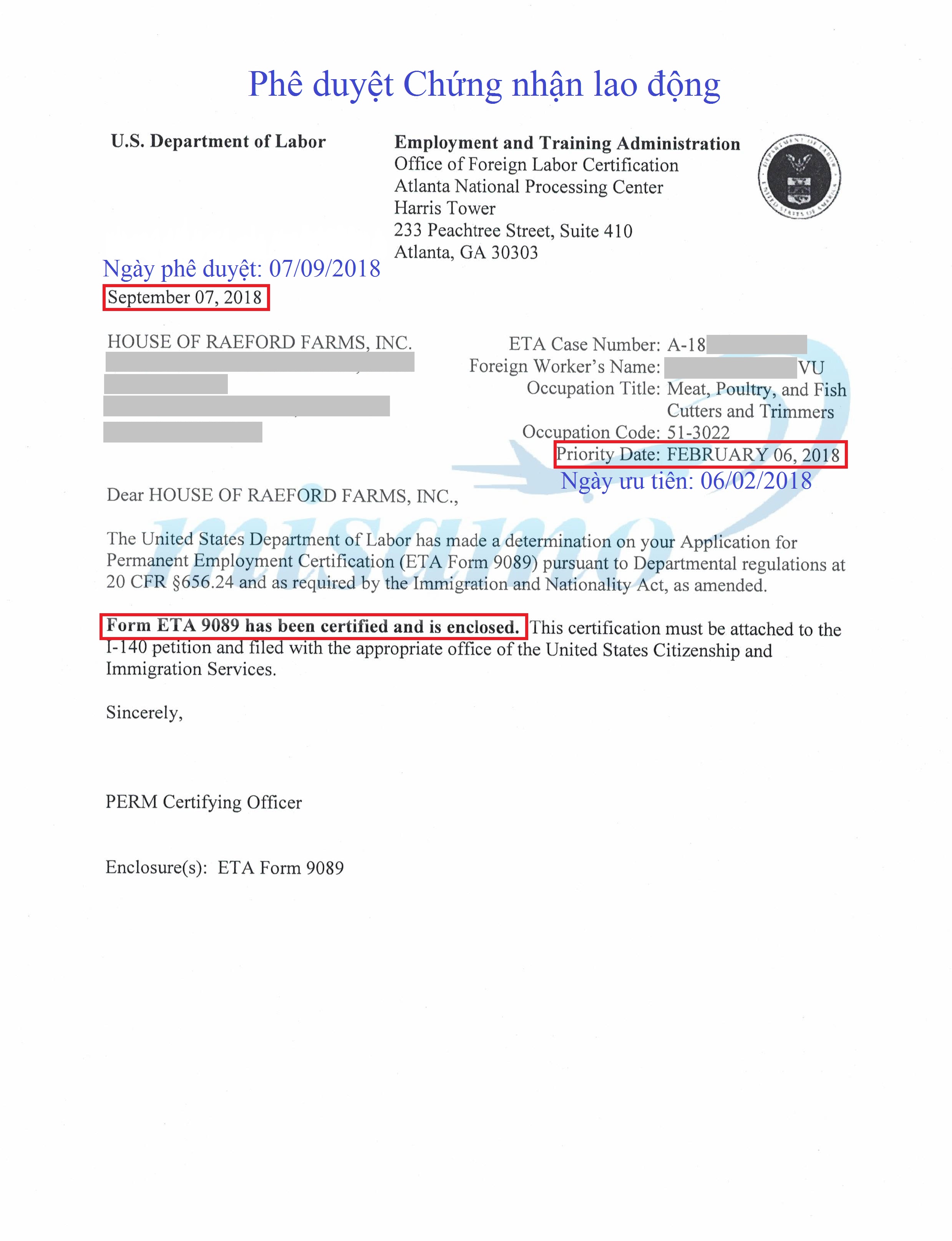Chúc mừng những khách hàng đã được phê duyệt Chứng Nhận Lao Động: