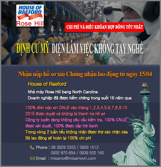 [House of Raeford] Đang trong quá trình xét duyệt hồ sơ cho những khách hàng nộp đơn tại Bộ lao động đến ngày 04/11/2015