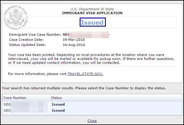 <Kết quả tra cứu trên trang National Visa Center của anh Choi>