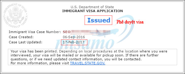 Gia đình khách hàng Jung** của Misamo nhận được visa định cư thông qua nhà máy House Of Raeford ngày 16/02/2017. Dưới đây là kết quả phê duyệt hiển thị trên trang web Visa Status Check.