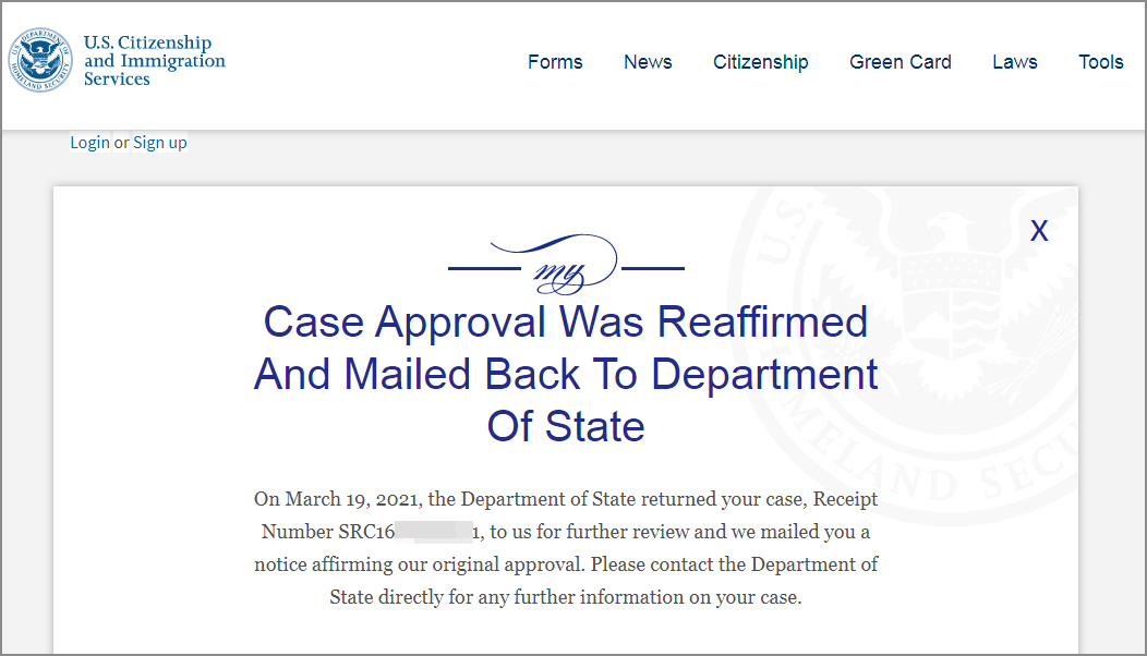 USCIS đã chuyển hồ sơ khách hàng  sang Trung tâm chiếu khán quốc gia NVC.