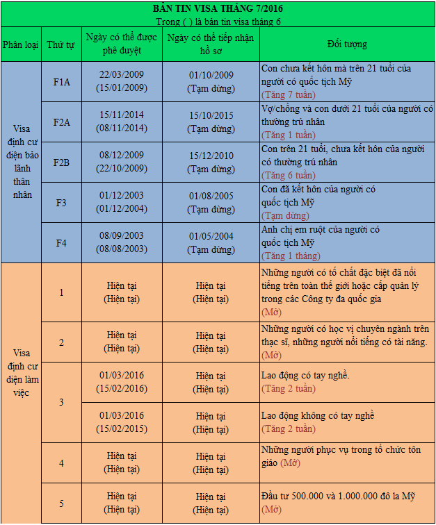 PHÂN TÍCH BẢN TIN VISA THÁNG 7/2016 VÀ DỰ BÁO TRIỂN VỌNG
