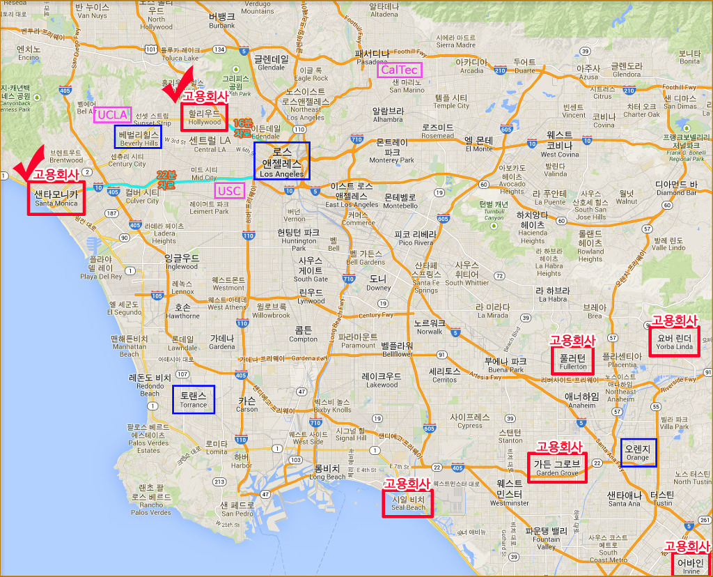 Công ty tuyển dụng có tất cả 7 chi nhánh đặt tại gần LA (màu đỏ) trong đó chỉ có chi nhánh đặt tại Hollywood và Santa Monica bảo lãnh cho các hồ sơ xin thẻ xanh nhưng các chi nhánh còn lại cũng đang có kế hoạch sẽ nhận bảo lãnh xin thường trú nhân trong thời gian sắp tới.