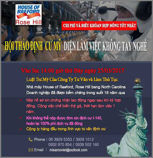 Công ty đa quốc gia MISAMO chuyên về tư vấn định cư sẽ tổ chức hội thảo định cư Mỹ tại văn phòng Công ty Misamo Việt Nam vào lúc 14:00 giờ thứ sáu ngày 10/03/2017 và thứ bảy ngày 25/03/2017. Chúng tôi sẽ giới thiệu đến khách hàng những chương trình tốt nhất mà chưa công ty nào có được và bảo vệ quyền lợi khách hàng bằng các điều khoản có lợi trong hợp đồng.