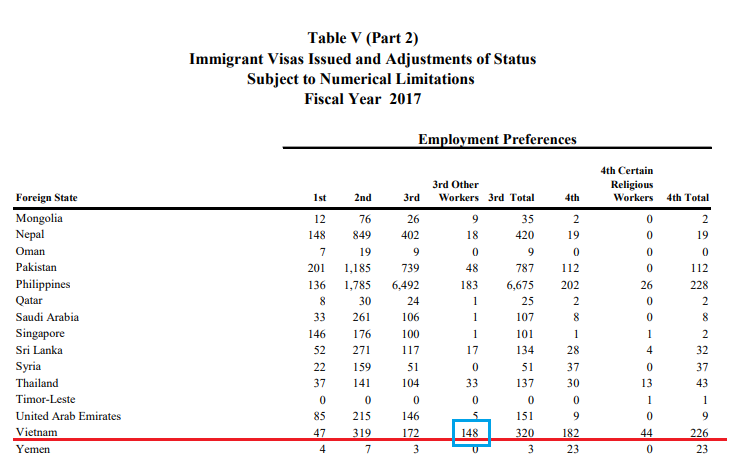– Việt Nam: 81 visa, bao gồm cả I-485 là 148 visa