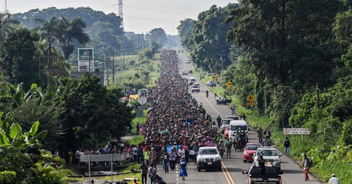 Những người nhập cư xuất thân từ các vùng ở Trung Mĩ như Honduras, Guatemala, El Salvador, đang di chuyển đến thành phố Mexico. Đoàn người này kéo dài đến tận 1,5 km. Cảnh sát Mexico đang phải huy động máy bay trực thăng để xem xét tình hình đoàn người di dân này.