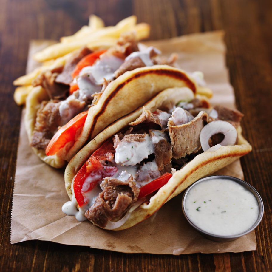 Nếu bạn muốn một món ăn nhanh nhưng vẫn bổ dưỡng thì hãy chọn Gyro – một loại bánh nhân thịt, có thêm nước sốt, rau trộn và đôi khi có cả khoai tây chiên.