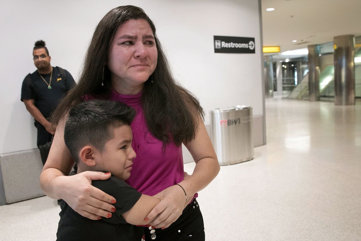 Một cậu bé 7 tuổi được đoàn tụ với mẹ tại sân bay quốc tế Baltimore-Washington hôm thứ Hai tại Linthicum, Md, từ El Salvador, mẹ và con trai đã được tách ra khi vào Mỹ vào ngày 13 tháng 6. PHOTO: WIN MCNAMEE/GETTY IMAGES