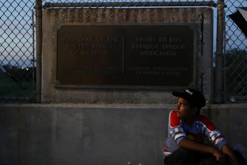 Một cậu bé người Honduras đang xin tị nạn chờ đợi ở phía Mexico của cầu quốc tế Brownsville & Matamoros