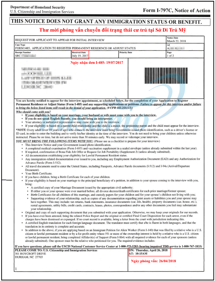 _Thông qua chuyển diện I-485, khách hàng có thể nhận được thẻ xanh ngay sau khi phỏng vấn mà không bị AP/TP.