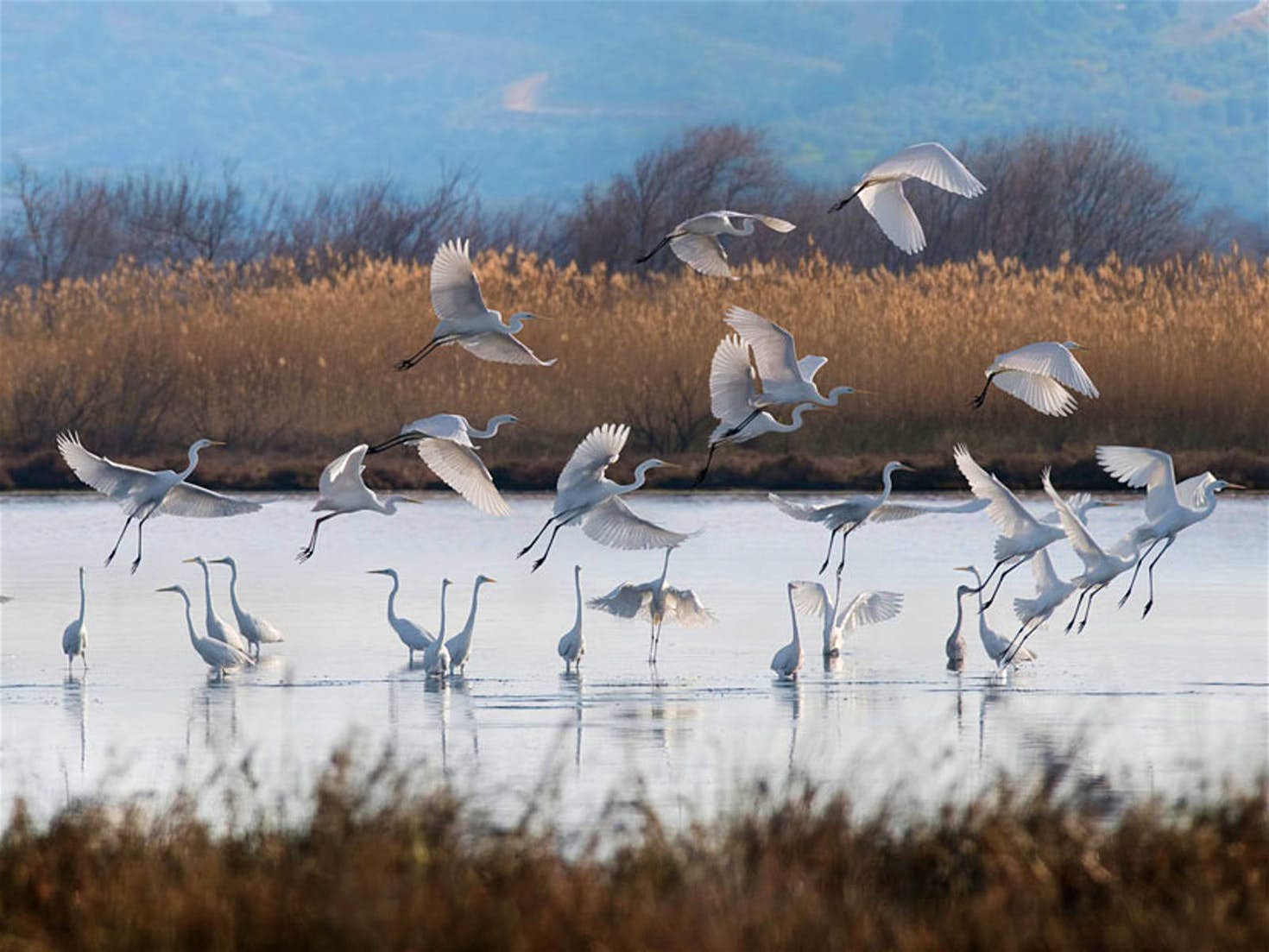 Từ tháng 9 đến tháng 3, người ta thường đổ về đầm Gialova tươi tốt để ngắm nhìn 271 loài chim di trú về đây. Ngay phía bắc Vịnh Navarino, đầm phá xanh tươi này là vùng đất ngập nước lớn nhất phía nam ở Hy Lạp và là điểm dừng chân quan trọng trên tuyến di cư giữa châu Phi và châu Âu. Khoảng 20.000 loài chim bao gồm chim Hồng hạc, Cò quăm và Diệc..