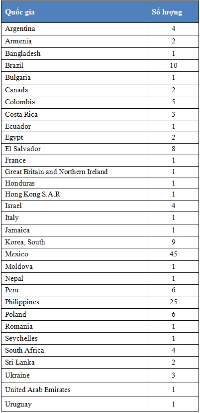 Dưới đây là thống kê số lượng Thị thực định cư điện làm việc EW3, bao gồm cả người hôn phối, và con cái đi kèm được cấp trong tháng 01/2019 theo từng quốc gia.