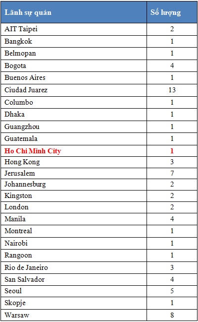 Dưới đây là thống kê số lượng Thị thực định cư điện làm việc EW3 được cấp trong tháng 05/2019 theo nơi cấp.