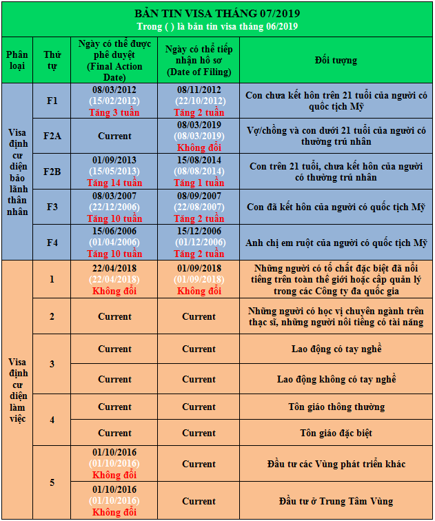 Bản tin visa tháng 07/2019 & Các thông tin định cư nóng