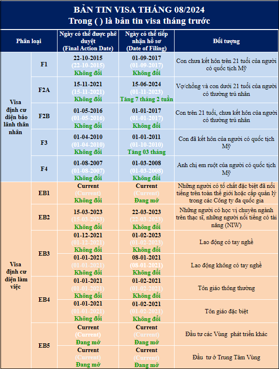 BẢN TIN VISA THÁNG 08/2024 VÀ CÁC THÔNG TIN ĐỊNH CƯ NÓNG