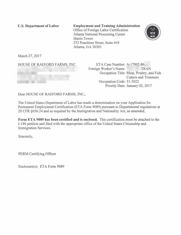 b.      House Of Raeford bắt đầu tuyển dụng mới trong tháng 5/2017 kế thúc cuối tháng 6/2017