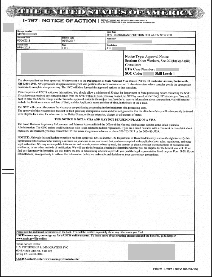 Misamo xin chúc mừng 04 khách hàng người Trung Quốc có đơn I –140 được phê duyệt .
